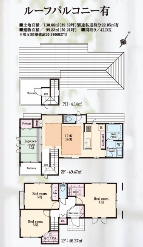 | 土地面積 | 130.00㎡(別途私道持分22.05㎡あり) |