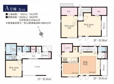 | 建物面積 | 102.05㎡(うち12.96㎡は車庫部分) |