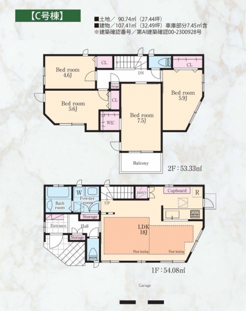 | 建物面積 | 107.41㎡(うち7.45㎡は車庫部分) |
