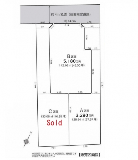 | 接道状況 | 北東側私道 4.0m ※一部通行掘削承諾取得済み |