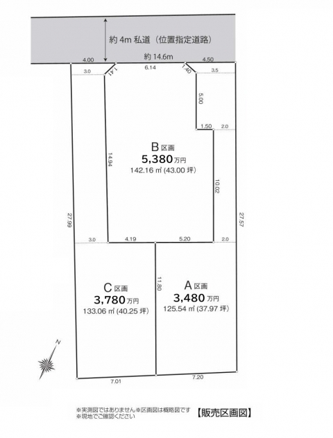 | 接道状況 | 北東側私道 4.0m ※一部通行掘削承諾取得済み |